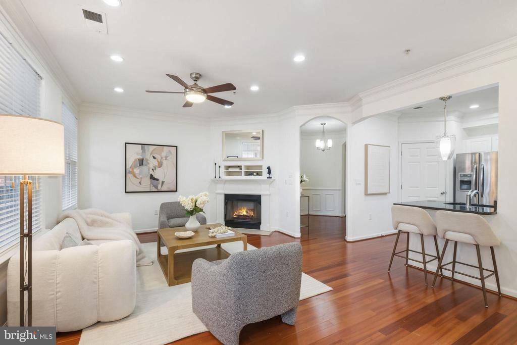 ONE OF THE MOST DESIRABLE BUILDINGS IN THE COLONNADE! Ideally located just a short walk down the hall to the ELEVATOR. This spacious 3BR/2BA residence offers access to the pool, fitness center, mail room, and all building amenities without ever stepping outside.This beautifully maintained condo includes TWO PREMIUM PARKING SPACES (81 & 97) on the same level, conveniently located near the building entrance within the gated, covered garage, plus TWO LARGE STORAGE UNITS (S-61 & S-62) a rare and valuable bonus. A grand foyer opens to a bright, airy layout designed for both everyday living and entertaining. The Living Room features a gas fireplace and recessed lighting, flowing seamlessly into the Dining Area with balcony access perfect for morning coffee or evening gatherings.The spacious Primary Suite offers private balcony access, an oversized walk-in closet, and a luxurious en-suite bath with double-sink vanity. Two additional generously sized bedrooms include ceiling fans and ample closet space. The hall bath also features a double vanity and tub/shower combination, and a convenient laundry closet is located in the hallway. Freshly painted throughout with brand-new carpet in all bedrooms, this home is truly move-in ready. Enjoy a prime location just moments from the shops, restaurants, and vibrant lifestyle of The Kentlands. As a resident of The Colonnade, you’ll also enjoy exceptional amenities including a fully equipped fitness center, outdoor pool, library, and elegant party room. Luxury, convenience, and location, all in one exceptional home.